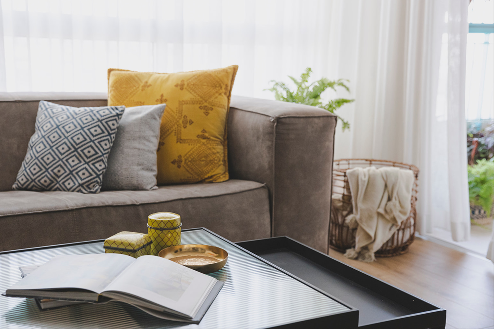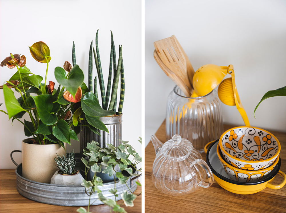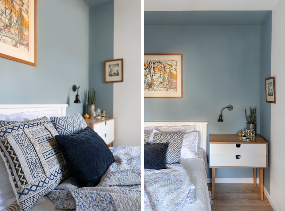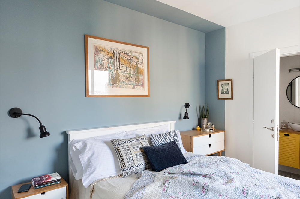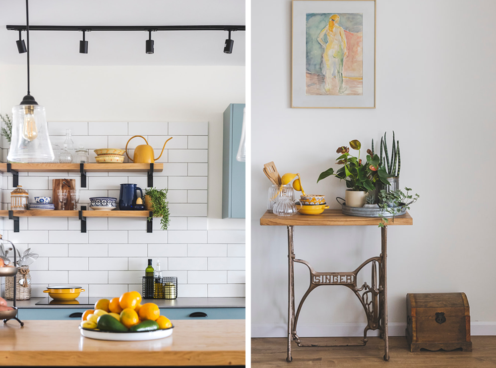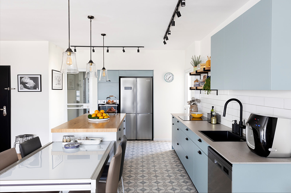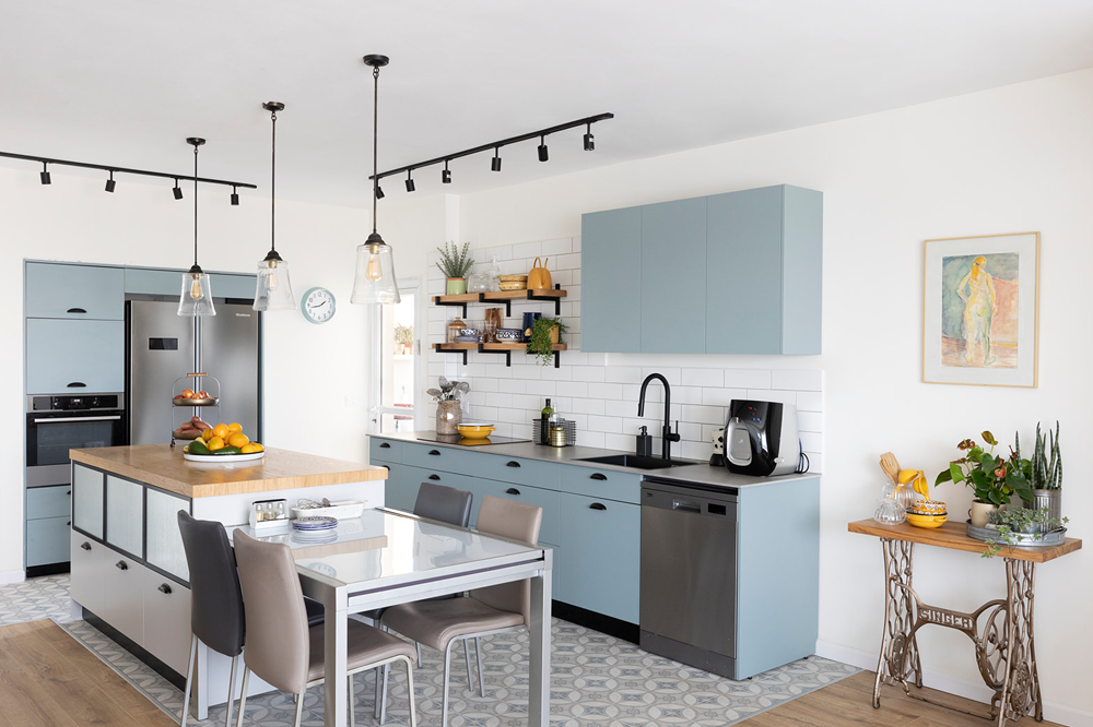 חומרי גלם מעניינים נוספים שנבחרו – ארונות אמבטיה בסגנון כפרי עם ידיות שחורות ומראות עם מסגרת שחורה, מזנון ושולחן סלון במתכת בצבע שחור ושילוב זכוכית פסים ועד לתמונות, כלים ואקססוריז, המשלימים את החוויה האקלקטית בבית.