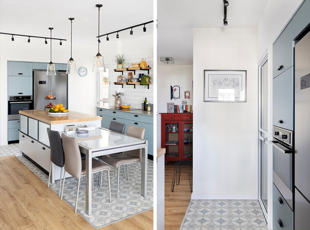 על מנת לייצר תכנון פונקציונלי, דואן תחמה את המטבח והמזווה בקרמיקה, ואילו שאר הבית רוצף בפרקט, למעט החללים הרטובים. הריצוף המצויר במטבח ובחללים הרטובים נבחר מאותה סידרה אך בדוגמאות שונות, כך שהם מדברים באותה השפה.
