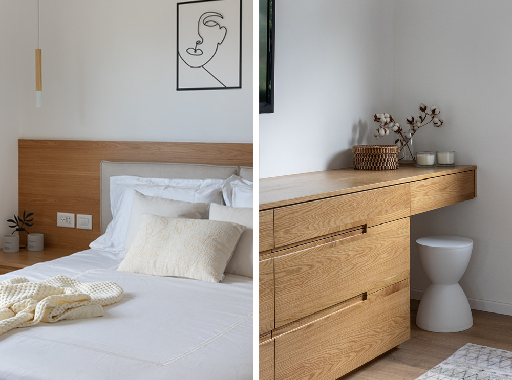 בצד השמאלי חוברו שני חדרים נוספים אל חדר שינה גדול של ההורים, שהפך ליחידה עצמאית ופרטית, המשלבת אזור שינה וחדר ארונות פתוח, שדרכו עוברים אל חלל חדר הרחצה.
